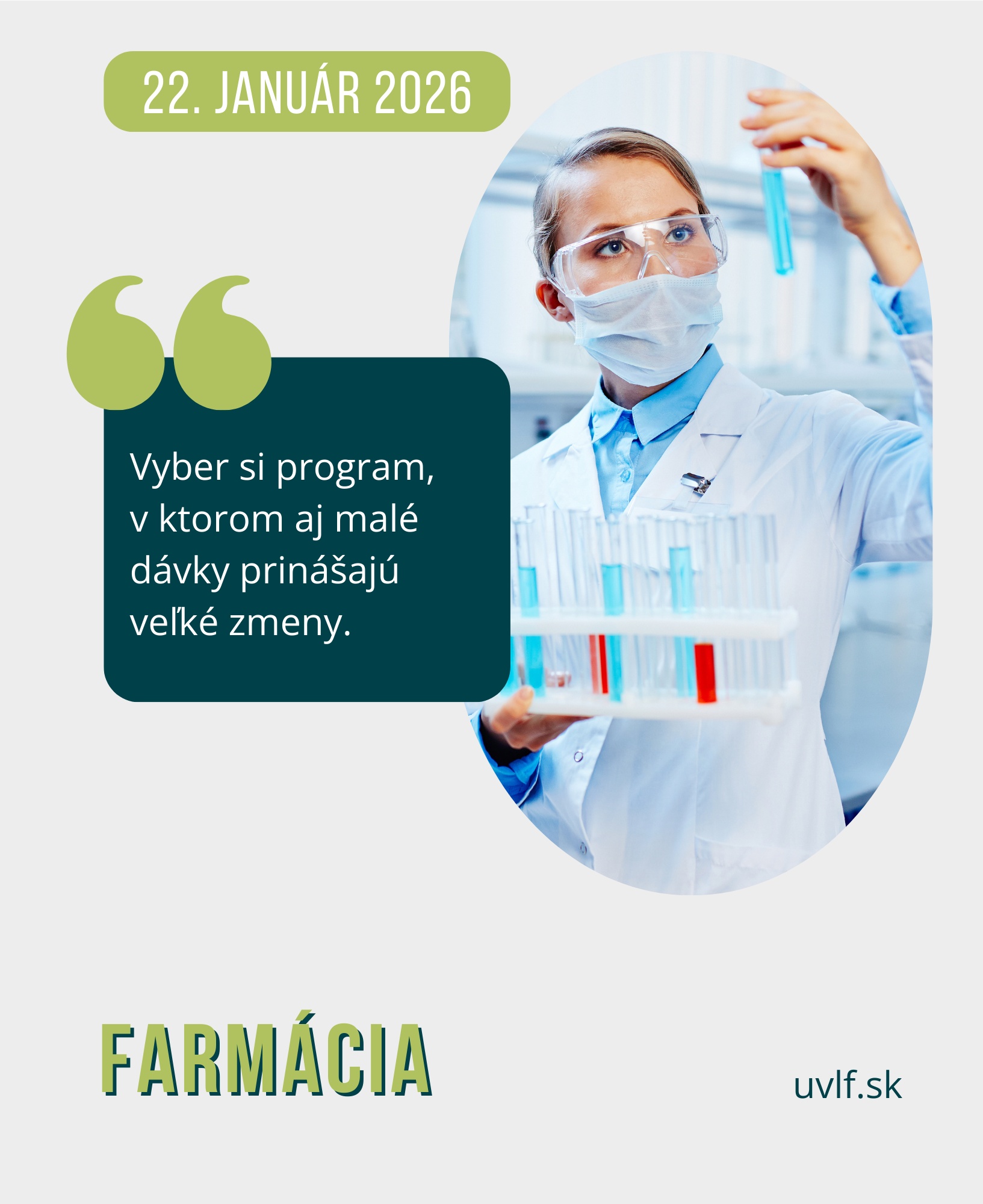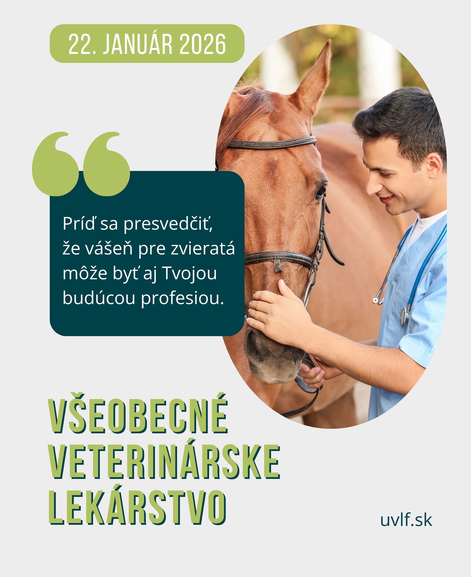 Univerzita veterinárskeho lekárstva a farmácie v Košiciach organizuje vo štvrtok 22. januára 2026 na svojich pracoviskách a v areáli univerzity DEŇ OTVORENÝCH DVERÍ UVLF. Záujemcovia o štúdium si budú môcť na vlastné oči obzrieť to, čo ich najviac zaujíma a pýtať sa pedagógov, študentov i pracovníčok študijného oddelenia.