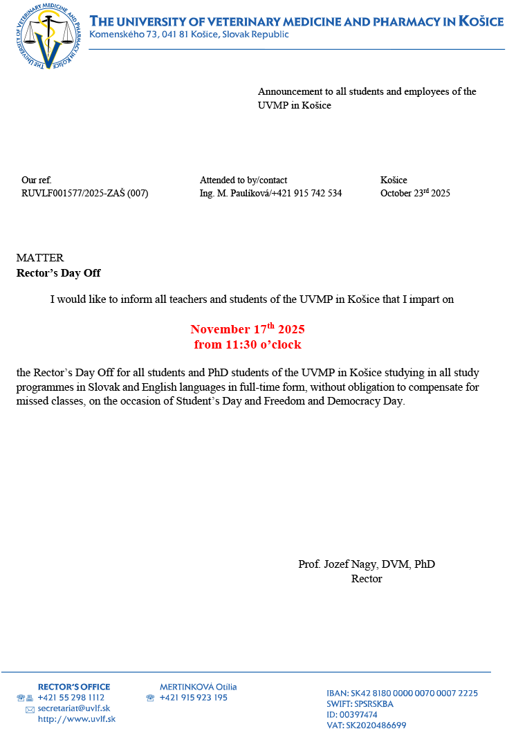 In the attachment, you can find information about the Rector's Day Off on November 17, 2025 on the occasion of International Students' Day and Freedom and Democracy Day.