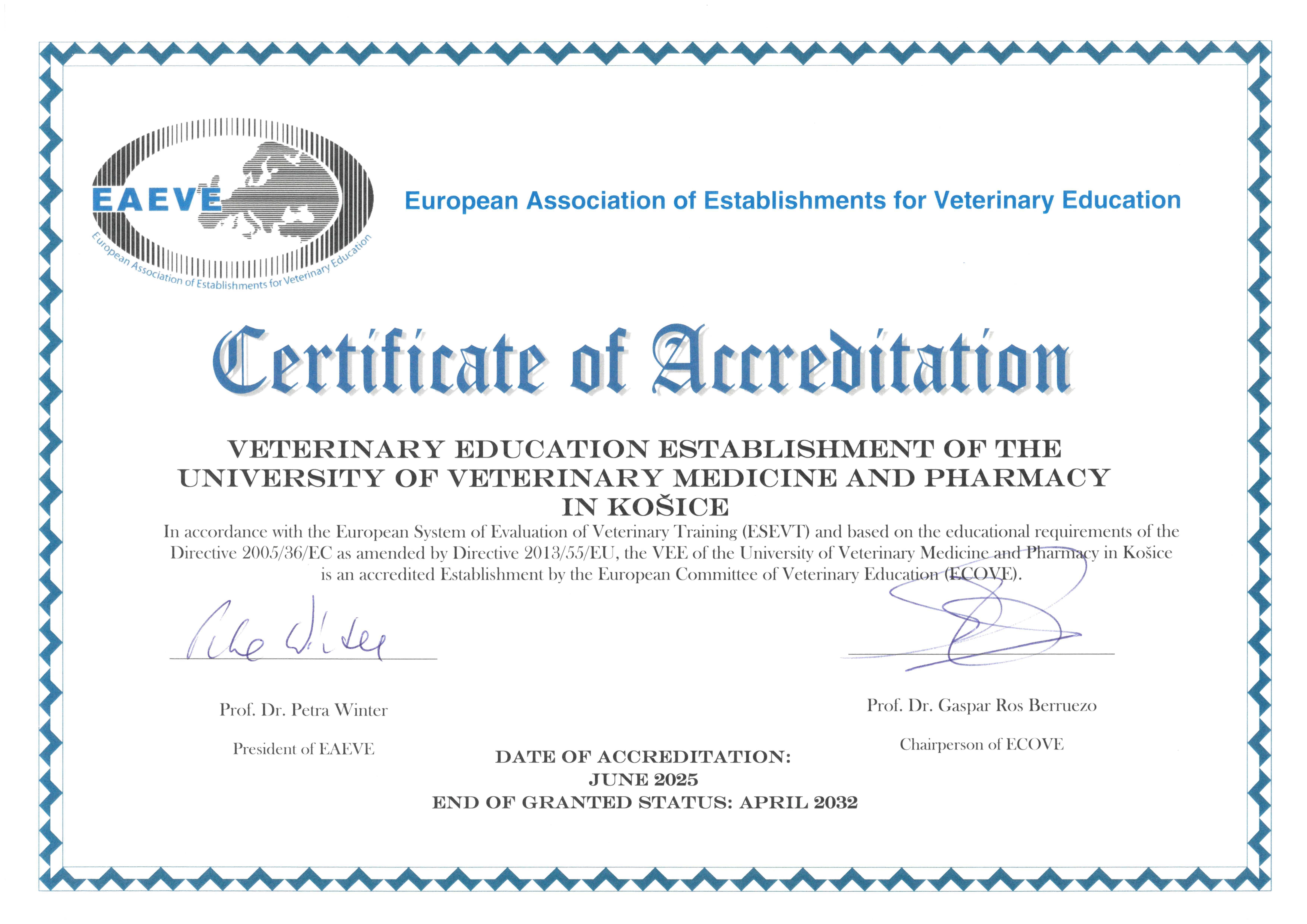 UVMP has received an international accreditation by EAEVE. The evaluation process of EAEVE (European Association of Establishments for Veterinary Education) has been successfully completed in June 2025. After the visiting experts recommended that our university be ranked among the accredited schools, a decision was taken at the ECOVE (European Committee of Veterinary Education) in June 2025 (valid till April 2032).