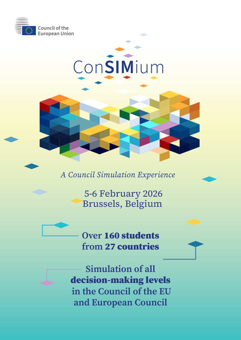 S potešením Vám oznamujem, že aj v akademickom roku 2025/2026 bude pokračovať projekt simulácií rokovaní Rady Európskej únie pre študentov vysokých škôl – ConSIMium (https://europa.eu/!X7HrtX) so slovenskou účasťou. Organizátorom projektu je generálny sekretariát Rady Európskej únie a na Slovensku je jeho partnerom Slovenská rektorská konferencia. Projekt ConSIMium má dvojaký účel. Vďaka simulácii práce Rady EÚ a Európskej rady sa študenti vysokých škôl oboznámia s úlohami a fungovaním oboch inštitúcií. Na druhej strane získajú príležitosť na interakciu s úradníkmi EÚ a môžu sa dozvedieť viac o kariérnych možnostiach v európskych inštitúciách. Projekt má ambíciu prehĺbiť vedomostí a rozvíjať zručnosti študentov vysokých škôl, podporovať partnerstvo a spoluprácu s európskymi inštitúciami, zapájať mladých ľudí do budovania európskeho občianskeho priestoru a umožniť im pochopiť politické procesy v EÚ. Úžitok z projektu majú predovšetkým študenti vysokých škôl.
