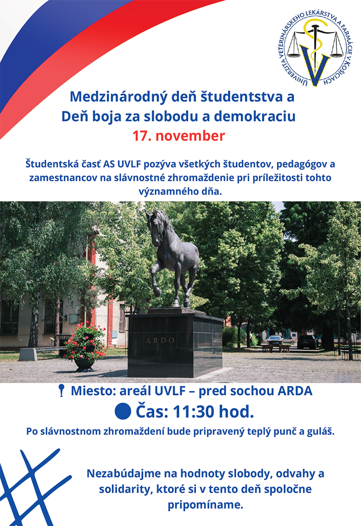 Pripájame aj pozvanie študentskej časti Akademického senátu UVLF na spoločné stretnutie, na ktorom si chceme pripomenúť hodnoty slobody, demokracie, odvahy a solidarity.
