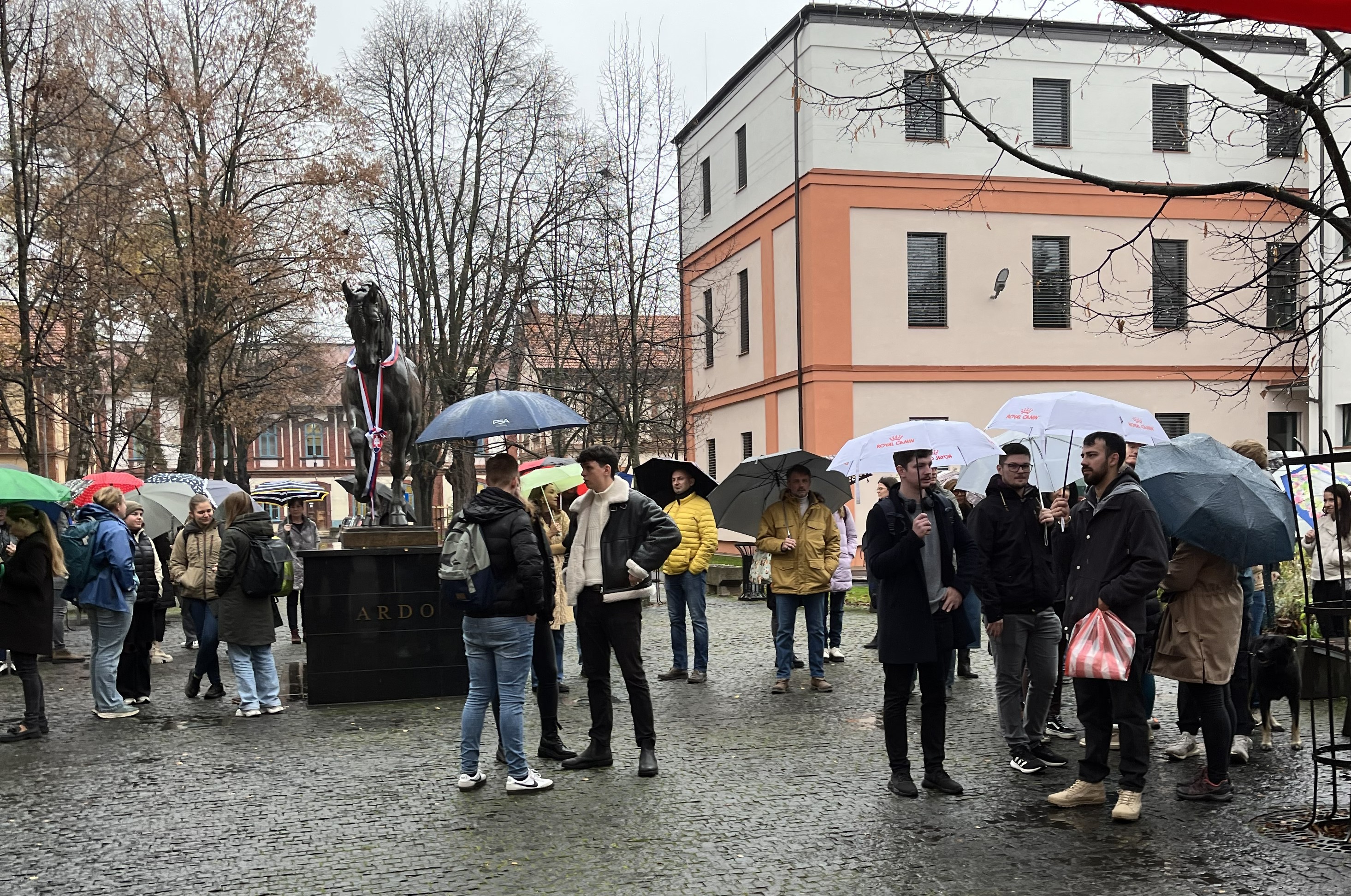 Študentská časť Akademického senátu UVLF zorganizovala v pondelok 17. novembra 2025 slávnostné zhromaždenie pri príležitosti Medzinárodného dňa študentstva a Dňa boja za slobodu a demokraciu. Napriek vytrvalému dažďu a nepríjemnému počasiu sa uprostred areálu uníverzity pri jej symbole - bronzovom žrebcovi Ardovi - stretli študentky, študenti, vedeckí, pedagogickí i nepedagogickí zamestnanci UVLF. Hovorili spoločne o tom, že sloboda zmýšľania, vyznania či konania, demokracia, tolerancia, ľudské práva, sú aj dnes hodnotami v ohrození. Je nevyhnutné, aby sme stále pripomínali, že boli zaplatené ľudskými životmi, krvou, fyzickým i psychickým utrpením, že nie sú samozrejmosťou. Aj pri výbornom guláši a horúcom punči sa potom pokračovalo v debatách o tom, ako November 1989 prežívali tí, ktorí boli vtedy študentmi, mladými vedcami, začínajúcimi učiteľmi a ako vnímajú súčasnú situáciu v spoločnosti. Dnešní študenti hovorili o svojich predstavách a očakávaniach a zdôraznili, že v nich nechcú poľavovať, lebo im záleží na tom, aká budúcnosť ich čaká.