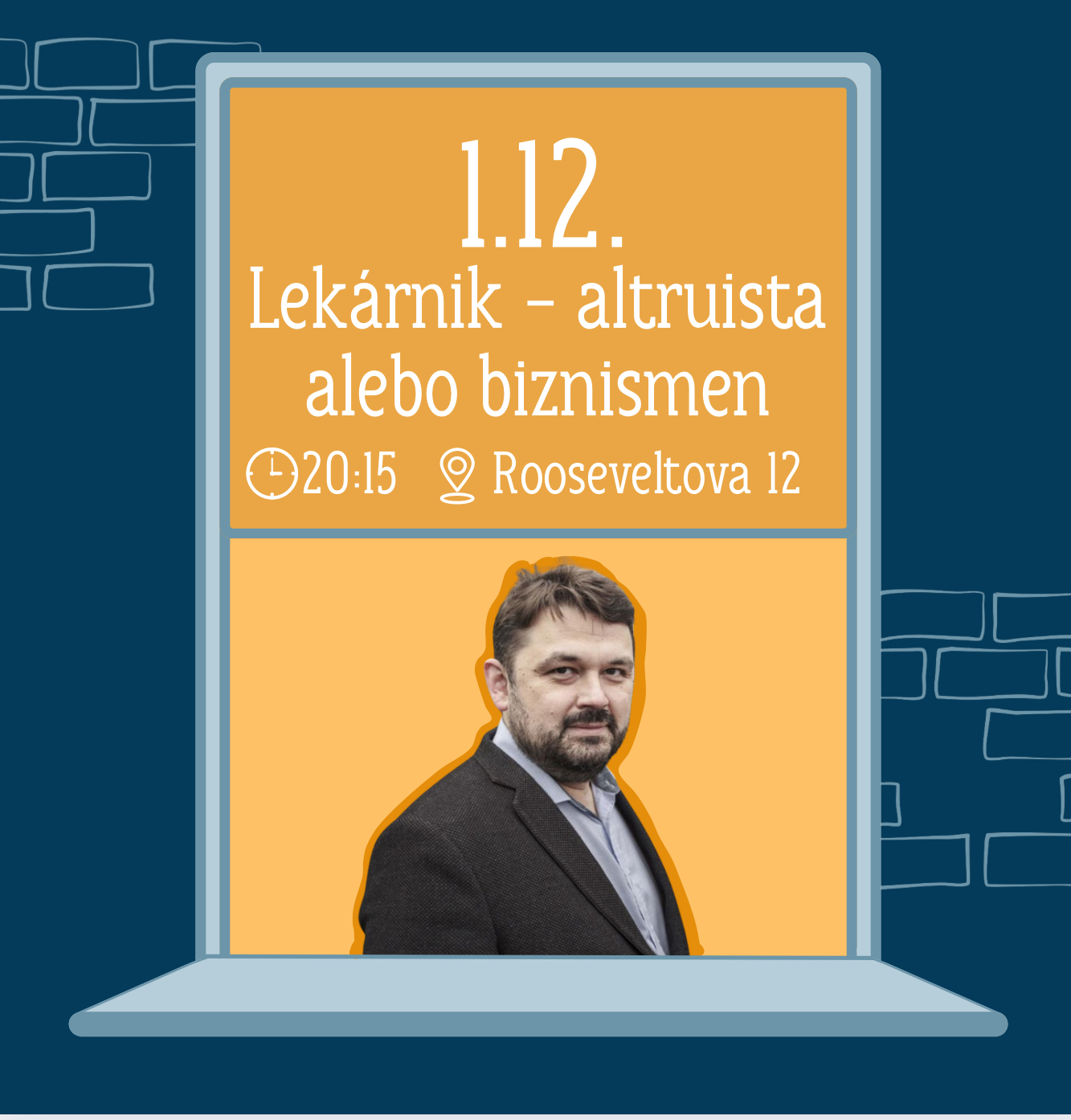 Univerzitné pastoračné centrum sv. košických mučeníkov na Rooseveltovej č. 12 v Košiciach pozýva na diskusiu na tému Lekárnik - altruista lebo biznismen s prezidentom Slovenskej lekárnickej komory PharmDr. Ondrejom Sukeľom. Uskutoční sa v pondelok 1. decembra 2025 od 20.15 hod.
