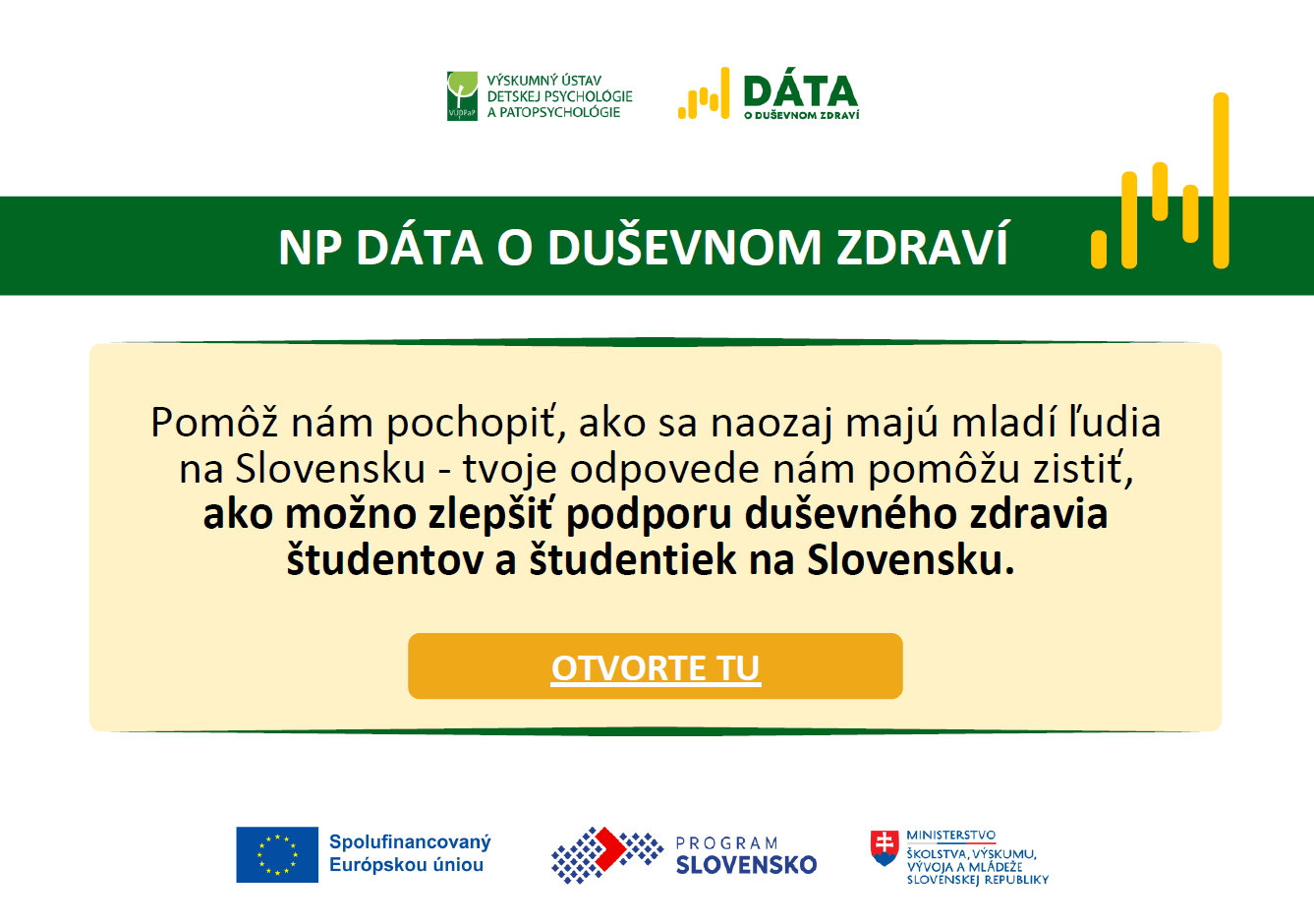 Prosíme, zapojte sa do národného projektu Dáta o duševnom zdraví, ktorý zastrešuje Výskumný ústav detskej psychológie a patopsychológie!