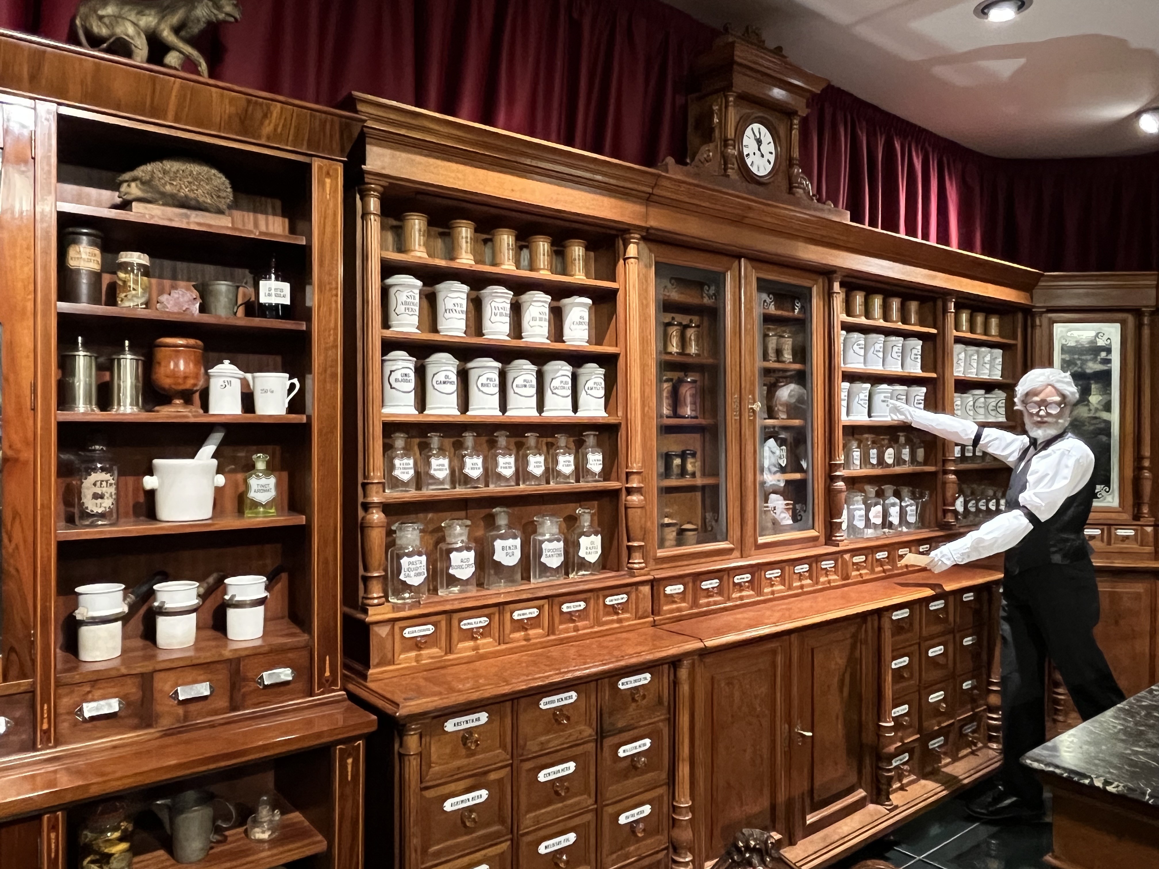 Expozícia zároveň upozorňuje na dnes už menej známe aspekty lekárnickej praxe. Súčasťou lekární boli v minulosti aj preparované živočíchy, z ktorých sa pripravovali liečivá. Ich prítomnosť mala nielen praktický, ale aj reprezentačný význam a poukazovala na prestíž lekárne a spoločenské postavenie lekárnika. Zároveň sa tu zdôrazňuje sociálna úloha lekárnika ako poradcu, dôverníka a neraz aj „spovedníka,“ ku ktorému ľudia neprichádzali iba po lieky, ale aj po radu, povzbudenie či útechu. Atmosféru dopĺňajú lekárske a lekárnické diplomy dokumentujúce odborné vzdelanie týchto profesií, ako aj busty Jozefa Kis-Vitzaya, významného košického lekára a mestského fyzikusa, a Jána Webera, známeho prešovského lekárnika.