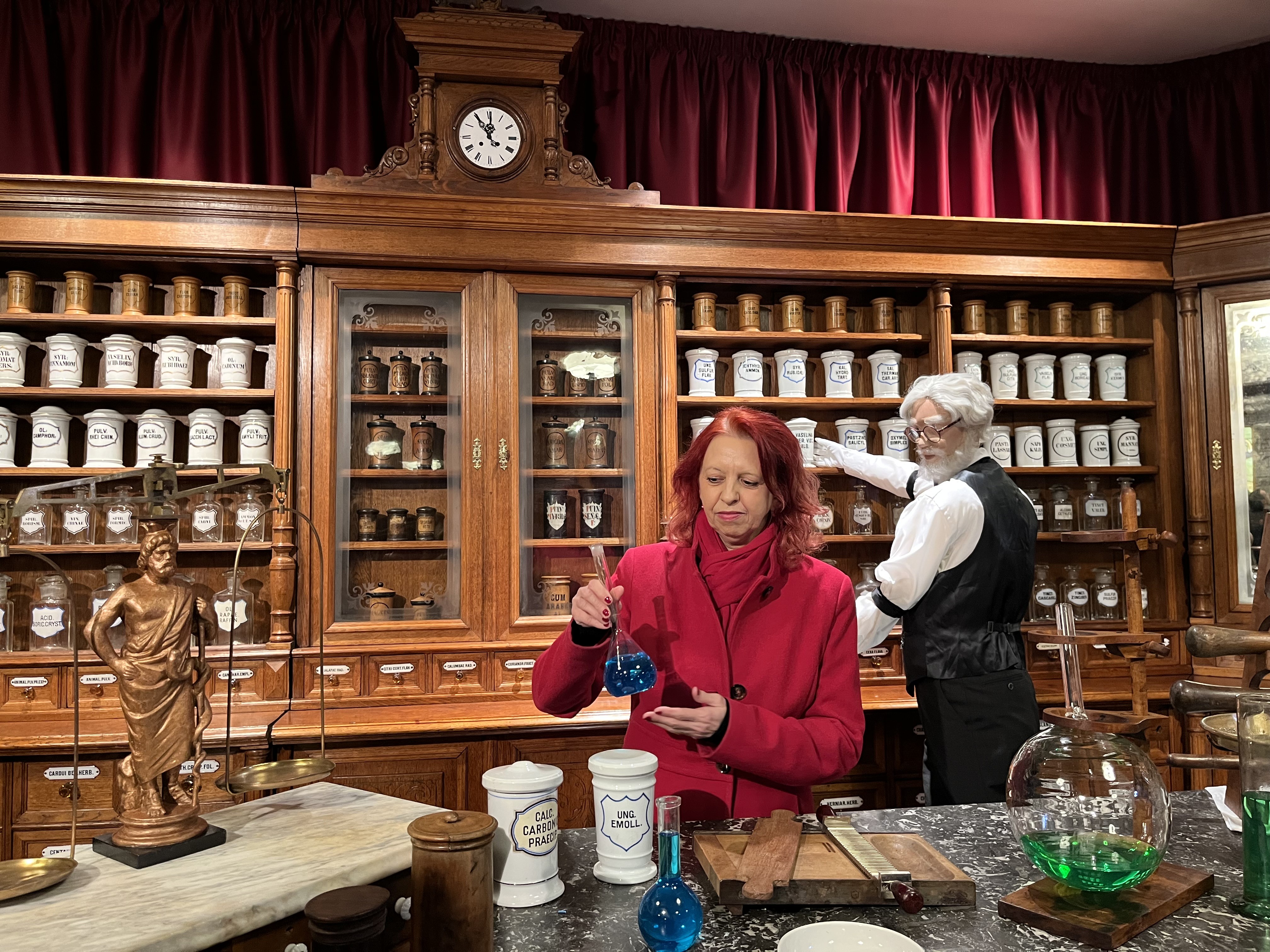Komentovanú prehliadku viedla kurátorka a autorka expozície, historička PhDr. PaedDr. Uršula Ambrušová, PhD., MBA, ktorá sa vo Východoslovenskom múzeu v Košiciach dlhodobo venuje výskumu dejín farmácie. Počas prehliadky študentom priblížila lekárnictvo nielen ako exaktnú vedu, ale aj ako fascinujúce remeslo plné príbehov, viery, symboliky a tajomstiev. Expozícia zároveň nadväzuje na tradíciu košickej jezuitskej lekárne U Božieho oka zo 17. storočia, ktorá zohrávala významnú úlohu v zdravotníckych a sociálnych dejinách mesta. Práve autentické prostredie historickej lekárne vytvára ideálny rámec na pochopenie vývoja farmácie v jej materiálnej aj spoločenskej podobe.