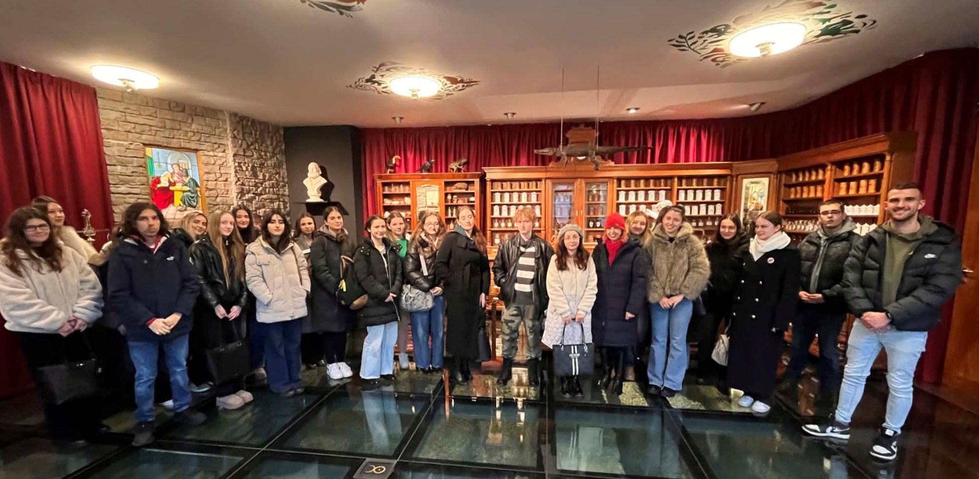 Študentky a študenti prvého ročníka odboru farmácia v rámci povinne voliteľného predmetu Dejiny farmácie na Univerzite veterinárskeho lekárstva a farmácie v Košiciach absolvovali dňa 12. februára 2026 odbornú exkurziu vo Východoslovenskom múzeu v Košiciach, ktorá zároveň tvorila prvé vyučovacie cvičenie tohto predmetu. Spolu s vysokoškolskými pedagógmi PharmDr. Štefániou Laca Megyesi, PhD., MSc., MPH, PharmDr. Máriou Gazdovou, PhD. a doc. MVDr. Petrom Váczim, PhD., navštívili novú stálu expozíciu Lekáreň U Božieho oka, ktorá komplexným spôsobom približuje dejiny lekárnictva v historickom, kultúrnom aj duchovnom kontexte.