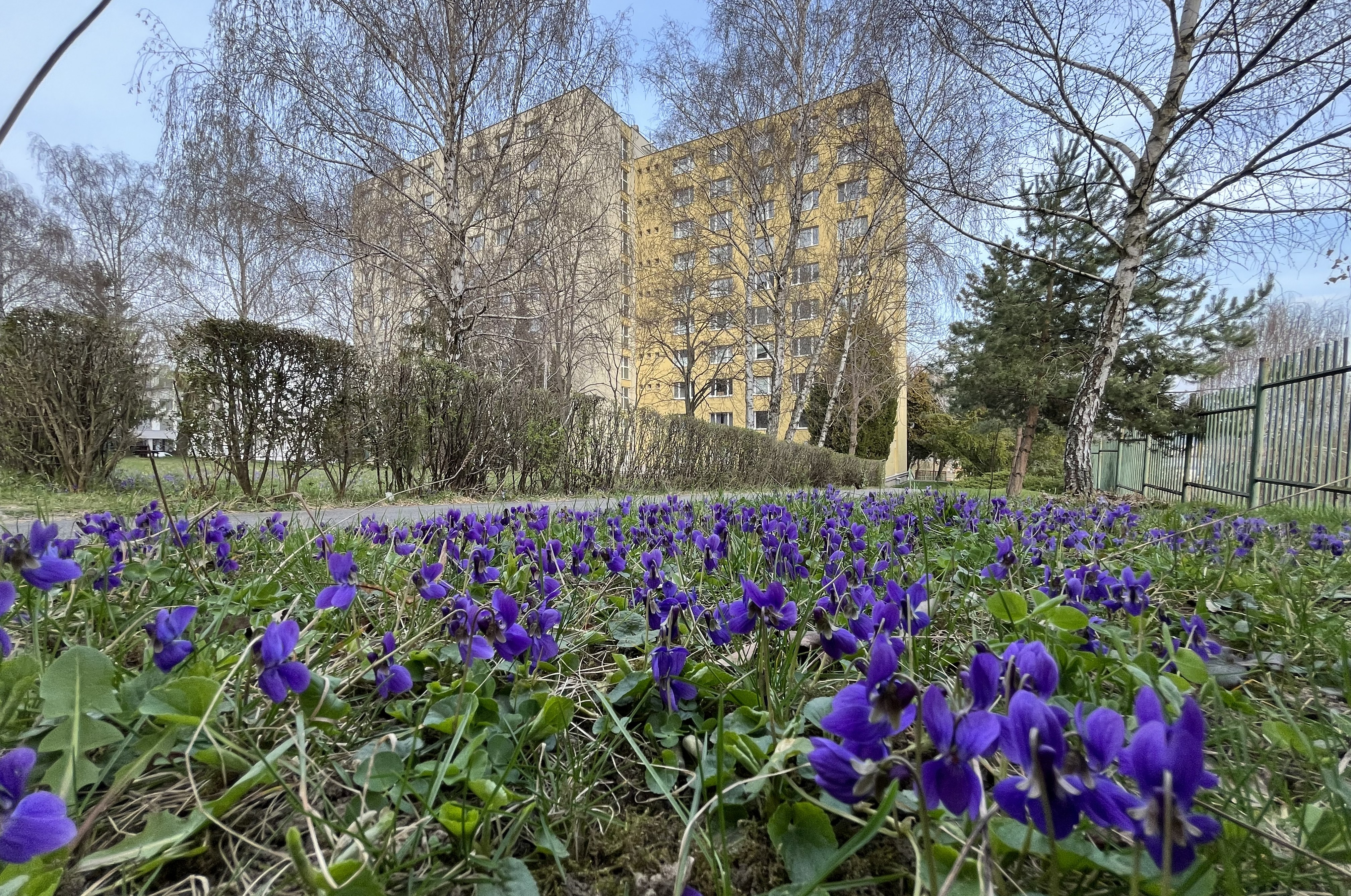 Symbolickú kyticu k sviatku by sme mohli nazbierať aj v areáli univerzity, fialkové pole rozkvitlo pri internátoch na Podhradovej