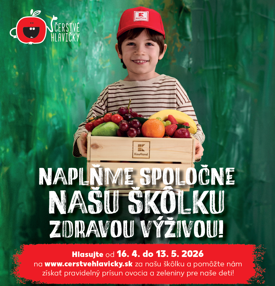 Naša materská škola VETERINKA sa zapojila do projektu ČERSTVÉ HLAVIČKY. Projekt Čerstvé hlavičky je dlhodobá iniciatíva spoločnosti Kaufland, ktorá od roku 2018 podporuje zdravé stravovacie návyky detí v materských a základných školách na Slovensku. Víťazné školy a škôlky získajú pravidelný prísun čerstvého ovocia a zeleniny počas celého školského roka 2026/2027. O tom, ktoré školy túto podporu získajú, rozhoduje verejné hlasovanie. Veterinka preto prosí o podporu.